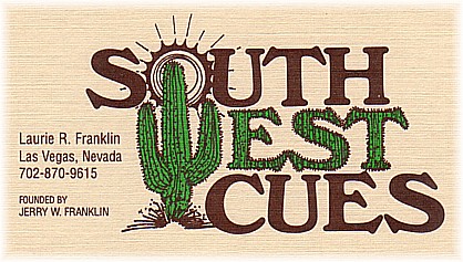 Jerry made the cue you see below for me in 1992. It is Gaboon Ebony with Ivory inlays & floating Birdseye Maple points. The ivory butt cap of the cue has a hand painted desert scene. The cue also has matching custom made joint protectors.